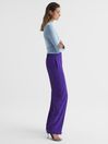 The Aleah trousers offer an elevated take on our most-loved Frazer, cut into the same wide-leg silhouette with a clean and more enhanced front thanks to the zip fly and hook closure. They maintain the comfort elements with a partially elasticated waistband and flowing design, yet the stylish finish affirms their place in your core 9 to 5 wardrobe. Tuck in a body or cami top from our collection, add a blazer then choose sneakers or sandal heels depending on the mood. High waisted. Partially elasticated waistband. Pinched seams. Zip fly and hook closure. Side seam pockets. Wide leg. L refers to garment length. This is an additional 5cm in length compared to regular (R) length. The model is wearing a size 8. Measurements of model: Height 5ft 10" / 178cm.