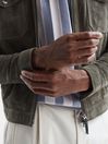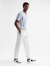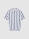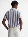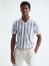 The Cromer polo shirt in rust is a desirable casual option with a season-spanning style. It s crafted from a chenille fabrication in a striped design that sits close to the frame. An open neckline is featured along with ribbed trims, for a refined, laidback look. Style with relaxed trousers and throw on a bomber jacket for a classic Reiss edit. Open collar neckline. Short sleeves. Chenille fabrication. Striped design. Ribbed trims. Slim fit. The model is wearing a size M. Measurements of model: Height 6ft 2.5 / 189cm.