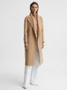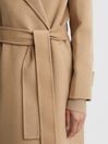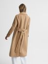 The blindseam coat is a Reiss' favourite, and this season they have updated it with the Agnes. An increased wool composition makes this a luxurious choice. Blindseam is a hand-finished feature which allows the garment to be unlined, highlighting the exquisite quality of the finish that doesn't need to hide behind a lining. The self-fabric waist belt lends a customisable fit and notch lapels keep it traditional with a smart finish. This silhouette is the perfect outer layer for cooler seasons. More details:- Notch lapels. Flat weave. Self-fabric tie waist. Slip pockets to each hip. Enamel press-stud cuffs. Blindseam hand-finish. This piece is made with recycled polyester yarn, a Reiss initiative to make garments more sustainable. The model is wearing a size 8. Measurements of model: Height - 5ft 9"/175cm, Chest - 32"/81cm, Waist - 23"/58cm.