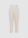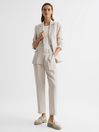 Refine your wardrobe with the Shae trousers. They’re crafted from a lightweight cotton-linen blend in an understated oatmeal hue, for season-long wear. The silhouette sits close to the frame, finishing in a tapered fit. An elasticated waistband and pockets lend a functional note. Style with the coordinating blazer and chunky flats for a confident edit or elevate with heels. Cotton-linen blend. Elasticated waistband. Belt loops. Side slip pockets. Jetted pocket to reverse. Pressed creases. Tapered fit. The model is wearing a size 8 Measurements of model: Height 5ft 10" / 178cm.