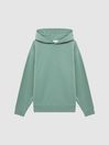 Change gears when dressing for the weekend in the fern green Kace hoodie. It’s crafted from soft and lightweight cotton yarns and is cut to an oversized fit for supreme comfort. Pair it with the matching shorts and add a fresh pair of our leather trainers to complete the look. Fixed hood. Side slip pockets. Oversized fit. This piece has been garment dyed. Applying the dye after it has been made into its finished shape softens the texture and results in more even colour coverage. Garment-dyed products tend to be richer in hue and softer to the touch. REISS partners with Better Cotton to improve cotton farming globally. Better Cotton is sourced via a system of Mass Balance and is not physically traceable to end products. The model is wearing a size M. Measurements of model: Height 6ft 2" / 188cm.