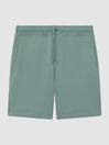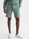 The Henry shorts in fern green are a downtime essential with a stylish edge. They re cut from soft jersey and they fasten with a drawcord waist. Wear them with a sweatshirt and leather trainers for a contemporary off-duty look. Garment dye. Drawcord waistline. Slash pocket to each hip. Oversized fit This garment is made using Better Cotton. REISS partners with the Better Cotton (BC) to improve cotton farming globally. The model is wearing a size M. Measurements of model: Height 6ft 2.5 / 189cm.