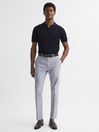 Embrace a modern look with the soft blue Pause chinos. They’re crafted from a cotton-blend in an on-trend puppytooth design and are cut to sit close to the frame. Wear with a polo shirt and leather shoes for a workwear edit, or tap into smart-casual styling by adding trainers. Cotton blend. Puppytooth design. Zip fly and hook closure. Side slip pockets. Jetted pockets to reverse. Pressed creases. Slim fit. Reiss partners with Better Cotton to improve cotton farming globally. Better Cotton is sourced via a system of Mass Balance and is not physically traceable to end products. The model is wearing a size 32 Measurements of model: Height 6ft 2.5 / 189cm.