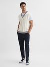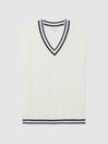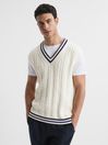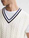 The Gove vest is spun from a cotton blend and arranged into a cable knit design for a heritage mood. It’s sleeveless and fitted with a v-neckline, making it an apt choice for layering over T-shirts on casual days. Pair with jeans or chinos to curate an on-trend edit. Cotton blend. Cable knit design. Ribbed trims. V-neckline. Sleeveless.