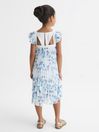 Intricate design elements create the blue Aster dress; a knife-pleated fabrication is accented with lace trims for a refined party look. A square neckline is featured along with cut-outs to the reverse, for a unique look. Style this dainty gown with her favourite sandals to get special-occasion ready. Square neckline. Capped sleeves. Floral printed design. Knife-pleat design. Layered construction. Lace detailing. Zip closure to reverse. Cut-out detailing to reverse. Loose fit.