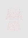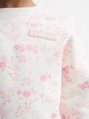 The Nina sweatshirt and shorts set is crafted from a jersey fabrication for a comfortable fit. The shorts feature a drawstring waistband and side pockets, whilst the sweatshirt is cut with dropped shoulders and a crew neckline. Considered elements like a rubberised Reiss patch and ribbed trims are added to elevate the look. Wear with trainers for an on-trend, relaxed edit. Floral print. Crew neckline. Rubberised Reiss patch to chest. Elasticated drawstring waistline. Long sleeves. Ribbed trims. The model is wearing a size 5-6 yrs Measurements of model: Height 3ft 7" / 115cm.