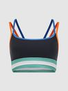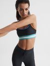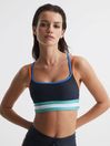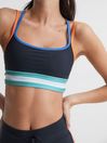 The Upside, curated by Reiss, is a dynamic collection of women’s athleisurewear crafted to transform your workout wardrobe. Think design-led, supportive styles engineered to work as hard as you. The navy Tempo Poppy Bra is designed in a contemporary colour block design. It’s fitted with double shoulder straps for a supportive wear, and the brand’s signature arrow logo is featured to the reverse. Opt for the Poppy bra to elevate your activewear rotation, and complete the edit with leggings and trainers. Square neckline. Double shoulder strap design. Removable padding. Slim fit.