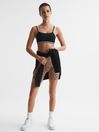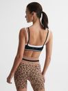 The Upside, curated by Reiss, is a dynamic collection of women’s athleisurewear crafted to transform your workout wardrobe. Think design-led, supportive styles engineered to work as hard as you. The Kelsey black bra is a dynamic addition to your activewear selection. It’s crafted with a double bra design and contrasting under band, with the brand’s signature logo featured to the reverse for elevated style. It’s constructed from a seam free fabrication with moisture control properties, making it the perfect base layer for your workout wardrobe. No padding. Double bra design. Arrow logo to reverse. Seam free.
