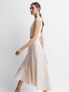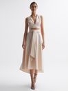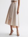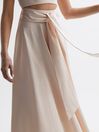 Elegant evenings call for the nude Rebecca midi skirt. It’s an asymmetric style which drapes naturally against the frame, ideal for special occasions. Cinch the figure with the self-tie waist belt and pair with the coordinating top to balance the silhouette. Cotton blend. High rise. Self-tie waist belt. Side slip pockets. Midi length. Asymmetric hem. Fitted. Reiss partners with Better Cotton to improve cotton farming globally. Better Cotton is sourced via a system of Mass Balance and is not physically traceable to end products. The model is wearing a size 8 Measurements of model: 5ft 11.5"/ 181cm