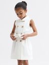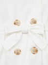 The white Natalie dress is suited to special occasions, thanks to it's traditionally formal elements. Note the double-breasted button front and lapel-style collar. A self-tie waist belt cinches the frame for a sweet fit and flare silhouette. Style with trainers or her favourite pumps to complete the look. Double-breasted button front. Lapel-style collar. Sleeveless Self-tie waist belt. The model is wearing a size 5-6 yrs. Measurements of model: Height 3ft 7" / 115cm.