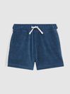 The Marine shorts are crafted from a cobalt blue cotton blend into a towelling finish for modern appeal. White side stripes play into a sportive aesthetic, ideal for his most active days. A drawstring waistband secures the fit. Complete the look with the matching shirt and throw on his favourite trainers. Cotton blend. Towelling fabrication. Stripe detail. Side slip pockets. Elasticated, drawstring waistband.