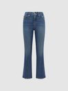 Good American, curated by Reiss, is a collection designed to work perfectly with your existing Reiss wardrobe. Innovative, solution-led denim and lifestyle garments champion inclusivity, enhance curves and represent body acceptance. By women, for women. For a customisable wear, choose the Good Curve Straight jeans in mid blue. They’re cut from a comfort-stretch fabrication into a straight-leg silhouette, sitting high-rise on the hips for an on-trend look. Distressed detailing enhances a modern aesthetic. Style with black heels or trainers, to suit your mood. Comfort-stretch fabrication. High rise. Reinforced belt loops. Gap-proof waistband. Five-pocket style. Zip fly and button closure. Distressed detailing. Straight leg. The model is wearing a size 26 Measurements of model: Height 5ft 10" / 178cm.