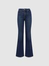 Good American, curated by Reiss, is a collection designed to work perfectly with your existing Reiss wardrobe. Innovative, solution-led denim and lifestyle garments champion inclusivity, enhance curves and represent body acceptance. By women, for women. The Good Classic Boot jeans are crafted from a Comfort Stretch fabric in a bootcut fit, engineered for everyday movement. These jeans feature reinforced belt loops and a gap-proof waistband for practicality, whilst distressed hems and an exposed button closure add an alternative edge. Include these ultra-high-rise jeans in your Reiss rotation for a casual yet sleek look. Ultra-high rise. Comfort Stretch fabrication. Reinforced beltloops. Gap-proof waistband. Exposed button closure. Five pocket style. Chewed hems. Bootcut fit.