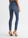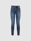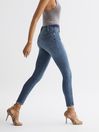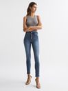 Good American, curated by Reiss, is a collection designed to work perfectly with your existing Reiss wardrobe. Innovative, solution-led denim and lifestyle garments champion inclusivity, enhance curves and represent body acceptance. By women, for women. The Good Legs Skinny Jeans are cut in a best-selling high-rise and skinny-fit silhouette. Its signature flat tummy technology, Super Stretch fabrication, and gap-proof waistband are engineered to sculpt and smooth the profile. An exposed-button closure and raw hem detailing modernise the look. Add to your Reiss rotation for a new everyday staple. Super-stretch fabrication. High rise. Zip fly and exposed-button closure. Reinforced belt loops. Gap-proof waistband. Five-pocket style. Raw hem. The model is wearing a size 26 Measurements of model: Height 5ft 10" / 178cm.