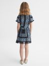 Expand her special occasion selection with the navy Alianna dress. It’s crafted from a unique floral print and fitted feminine puff sleeves. Frill detailing accentuates the look, whilst a waist belt tailors the profile. Pair with her favourite pumps to get party-ready in an instant. Floral print Crew neckline Puff sleeves. Frill detailing. Belted waist. Zip closure to reverse. Relaxed fit Lined.