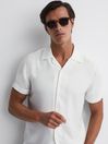 The navy Vitus polo blends a classic shape with a ribbed texture, for modern interest. It’s cut with a Cuban collar and fitted with a button closure, a familiar style for smart-casual occasions. Pair this slim-fit option with jeans or trousers. Choose trainers to pare back the look. Ribbed fabrication. Cuban collar. Buttoned front closure. Short sleeves. Slim fit. The model is wearing a size M Measurements of model: 6ft1 / 187cm.