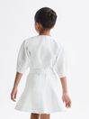 The Freeda dress is designed in a charming heart print that adds a feminine note to her wardrobe. It s cut in a fit and flare shape that falls freely to an above-knee length. The lightweight linen construction makes it the perfect pick for summer styling. Add sandals to complete the look. Crew neckline 1/2 sleeves. Bow to waistline. Fit and flare. Zip closure to reverse. Above-knee length.