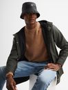 Rains, curated by Reiss, is a collection of outerwear and lifestyle garments with conceptual design details and a neo-Scandinavian aesthetic. The Danish label expertly embodies a balance between function and style. The Bucket Hat is a contemporary take on the classic silhouette, giving the rim a lower and more vertical form. Cut from Rains’ signature PU fabric, this hat is engineered to be waterproof with a smooth handle, alongside its soft, breathable lining. The Bucket Hat is finished with intricate stitch details. Complete your Reiss look with this piece for a casual yet practical mood. 100% polyester with PU coating. Features soft mesh lining, stitch detailing and structured fit. Measurements of model: Height 6ft 2.5 / 189cm.