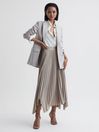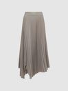Choose versatile options that serve you seamlessly through 9-5 and beyond, like the Jodie midi skirt. It’s a pleated design which flows naturally for a comfortable wear, and it’s fitted with an elasticated waistband. An asymmetric hem finishes the style, ideal for showcasing your evening footwear option. Tuck in a button-through blouse and fasten to curate your desired look. Pleated design. Elasticated waistband. Midi length. Asymmetric hem. The model is wearing a size 8 Measurements of model: Height 5ft 9" / 175cm.