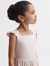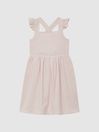 The Cerys dress is a simplistic yet elegant option for special moments. It’s a cross-back design, crafted to sit close to the chest whilst an elasticated panel ensures a comfortable fit. Frill detailing is added to the shoulder straps for feminine appeal, and the skirt drapes naturally to a below-the-knee finish. Its 100% cotton composition lends itself to warm-weather evenings and resort edits. 100% cotton. Cross-back design. Elasticated panel to reverse. Frill detailing.