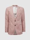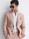 Give your suit collection a breezy update with the blush Kin, crafted from 100% linen for lightweight, comfortable wear. This blazer remains traditional with notch lapels and a three-pocket layout whilst the intricate stitch detailing and updated fabrication lend modernity. Style with the coordinating trousers then add a shirt and leather shoes for an effortlessly cool edit. 100% linen Single breasted Notch lapels Stitch detailing Three-pocket layout Two-button fastening Dual vents to reverse Lined The model is wearing a size 38. Measurements of model: 6ft 2'' / 188cm.