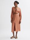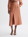 The Axelle midi skirt is set to become a versatile staple in your smart-casual wardrobe. Its linen-blend fabrication makes it a lightweight option for warmer months, and pockets lend a sense of functionality. A front slip elegantly showcases the frame. Complement its high-rise silhouette with the coordinating cropped blouse to curate a well balanced look. Linen blend. High rise. Side slip pockets. Front slip pockets. Darts to the reverse. Midi length. Bodycon fit. The model is wearing a size 8 Measurements of model: 5ft11 / 180cm.