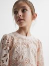 Add a feminine note to her occasionwear picks with the pink Nella cropped top. It’s constructed from lightweight cotton in a lace design and features a charming bow detail to the reverse. A keyhole opening accentuates this piece. Style with the coordinating skirt to complete the edit. 100% cotton Crew neckline Long sleeves Lace design Cropped Bow detailing to reverse Button closure to reverse Keyhole opening to reverse Lined