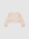 Add a feminine note to her occasionwear picks with the pink Nella cropped top. It’s constructed from lightweight cotton in a lace design and features a charming bow detail to the reverse. A keyhole opening accentuates this piece. Style with the coordinating skirt to complete the edit. 100% cotton Crew neckline. Long sleeves. Lace design Cropped Bow detailing to reverse. Button closure to reverse. Keyhole opening to reverse. Lined. The model is wearing a size 5-6 yrs. Measurements of model: Height 4ft / 123cm.