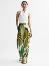 Wide Leg Mid Rise Printed Trousers
