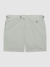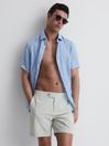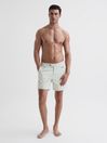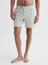 Hemingsworth, curated by Reiss, is a collection of English-made men’s swimwear, tailored for the modern globetrotter. The Clipper green striped shorts are engineered from an on-trend seersucker fabrication that’s quick-drying and fade-resistant, favoured for holiday moments now and later. Side adjusters tailor the shape, and a coin pocket is added for practical appeal. Choose these as part of your resort-wear selection. Quick-drying seersucker fabrication. Chlorine, salt water, and fade resistant. Polished metal side adjusters. Side-slip pockets. French zip-fly and Tahitian, Mother of Pearl button closure. Signature embroidered branding. Buttoned-flap coin pocket. Buttoned-flap pocket to reverse. Branded zip-fly and dual button closure. Loop tab to reverse. Lycra stretch mesh lining. Machine washable. The model is wearing a size M Measurements of model: 6ft 2" / 188cm.