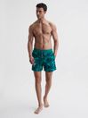 Vilebrequin, curated by Reiss, is a French swimwear brand inspired by stylish beach living, vibrant vacationers, and functional design. Ever-evolving yet always classic. The Moorea octopus print swim shorts are a playful option that inject personality into your vacation selection. Crafted from a quick drying, stretch fabrication with a drawstring waistband, they’re an efficient pick for poolside days. The brand’s logo is added to the reverse and the drawstring for instant style recognition. Add these to the top of your packing list this season. Octopus print. Quick-drying fabrication. Made from recycled scrap fibres. Elasticated drawstring waistband. Branded metal drawstring tips. Side slip pockets. Inner mesh briefs with no centre seam. Hand-stitched. Velcro flap pocket to reverse. Dual eyelets for water drainage (to avoid ballooning). Logo patch to reverse.
