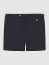Hemingsworth, curated by Reiss, is a collection of English-made men’s swimwear, tailored for the modern globetrotter. The Clipper shorts are engineered from a textured, striped, seersucker fabrication that’s quick-drying and fade-resistant, favourable for holiday moments now and later. Side adjusters tailor the shape, and a coin pocket is added for practical appeal. Pack these for a comfortable and stylish option. Quick-drying seersucker fabrication. Chlorine, salt water, and fade resistant. Polished metal side adjusters. Side-slip pockets. Signature embroidered branding. Buttoned-flap coin pocket. Buttoned-flap pocket to reverse. French zip-fly and Tahitian, Mother of Pearl button closure. Loop tab to reverse. Lycra stretch mesh lining. Machine washable.
