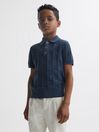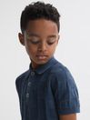 The blue Blaze polo T-shirt takes a casual staple and refines it with a basket-weave design for modern interest. It’s fitted with a press-stud polo neckline and a point collar for a seamless placement into his occasionwear collection. A 100% cotton composition makes it a lightweight option, ideal for summertime pairings with chino shorts or jeans. 100% cotton Basket-weave design Press-stud polo neckline Point collar Short sleeves Reiss partners with Better Cotton to improve cotton farming globally. Better Cotton is sourced via a system of Mass Balance and is not physically traceable to end products. The model is wearing a size 5-6 yrs Measurements of model: Height 3ft 9" / 121cm