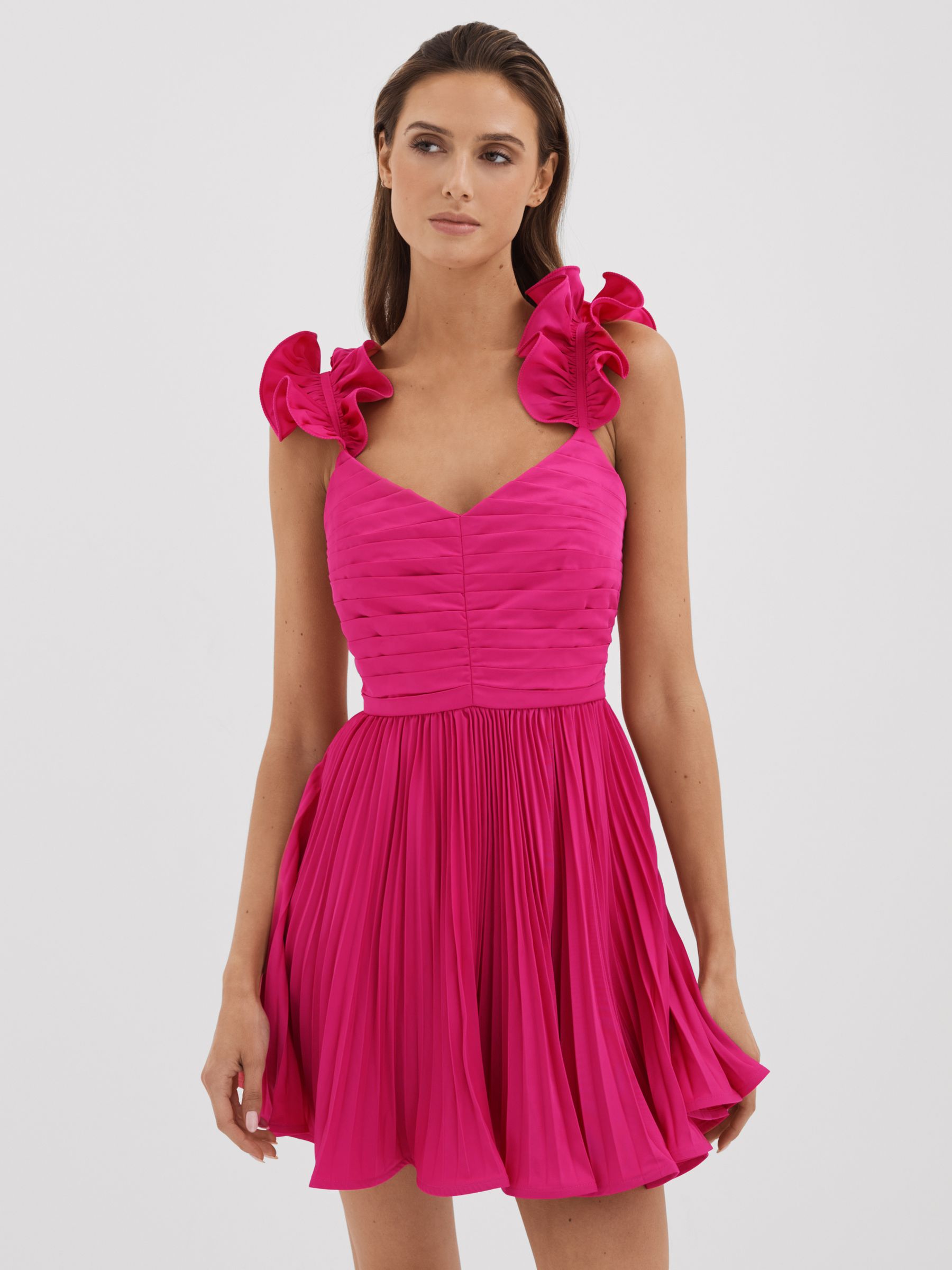 Amur Ruffle Strap Pleated Mini Dress in Pink Cabaret