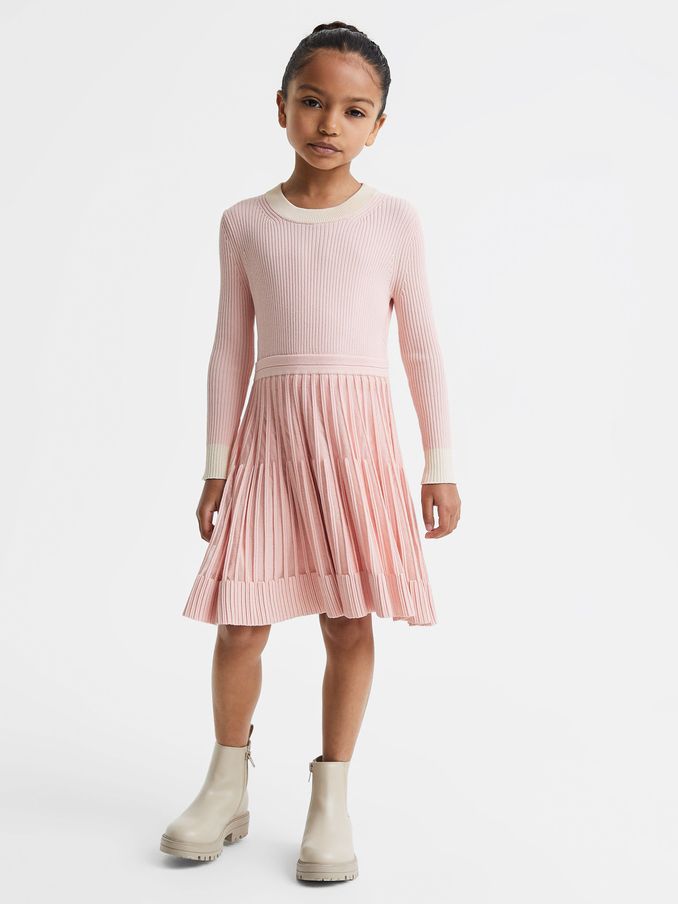 4-9 yrs Ribbed Fit-and-Flare Dress in Pink