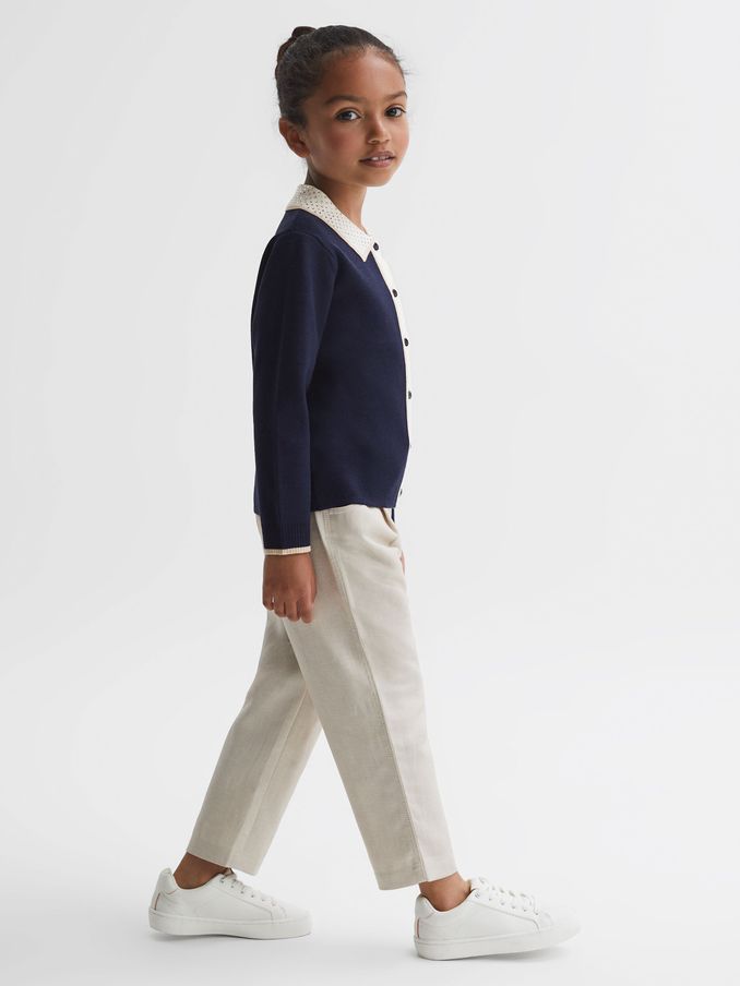 9-13 yrs Knitted Embossed-Button Cardigan in Navy
