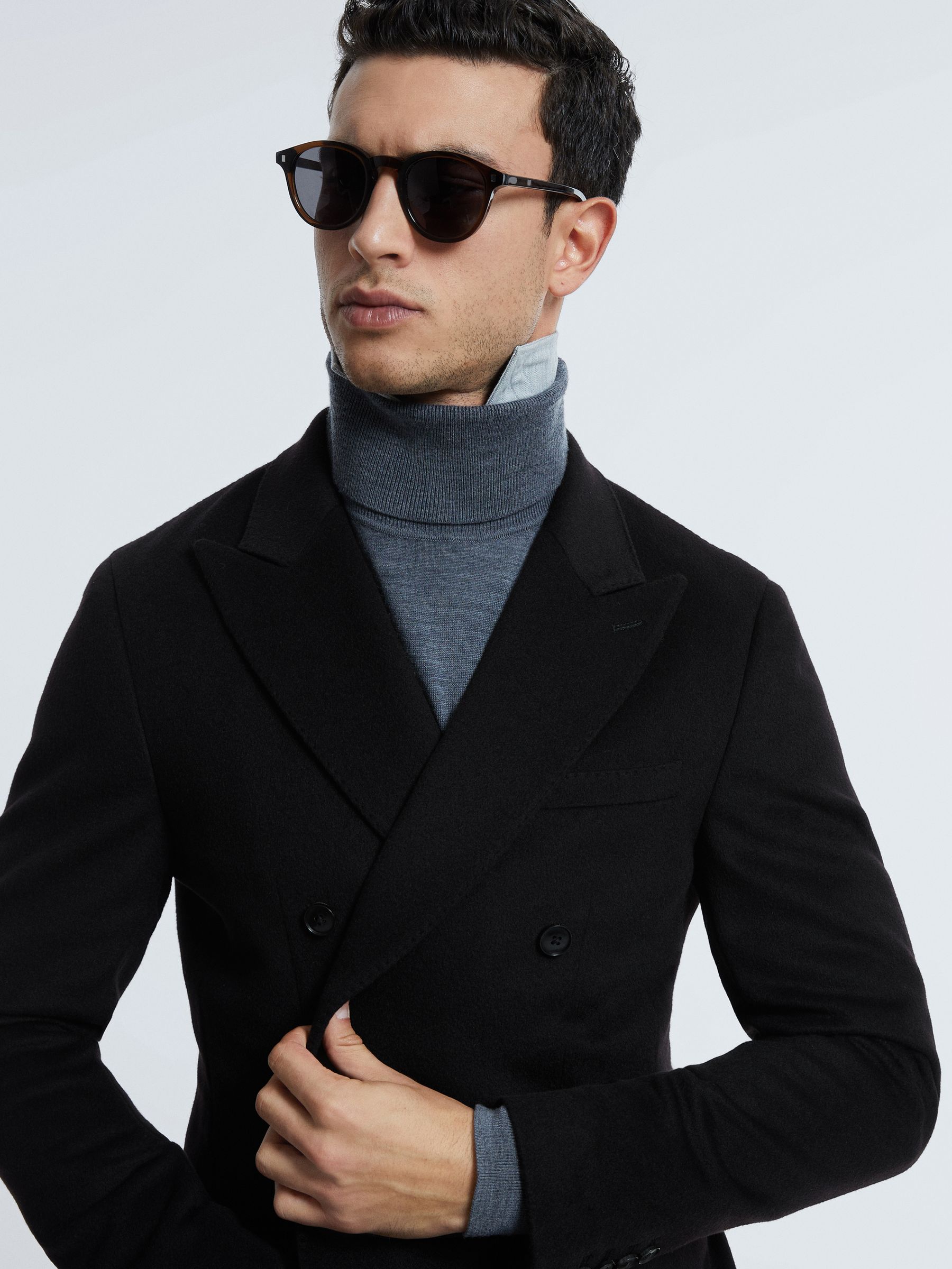 Atelier Cashmere Slim Fit Double Breasted Blazer in Black