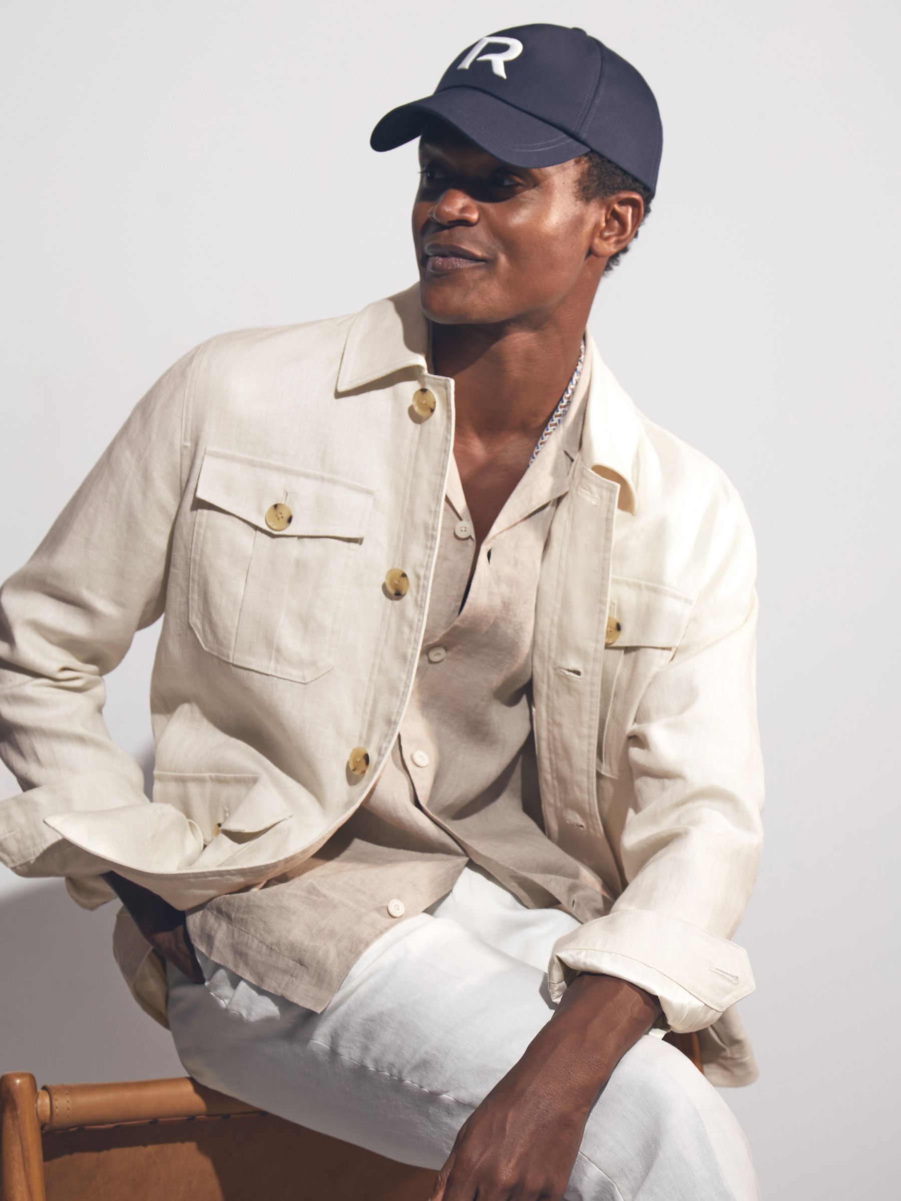 Oscar Jacobson Linen Double Breasted Blazer in Green