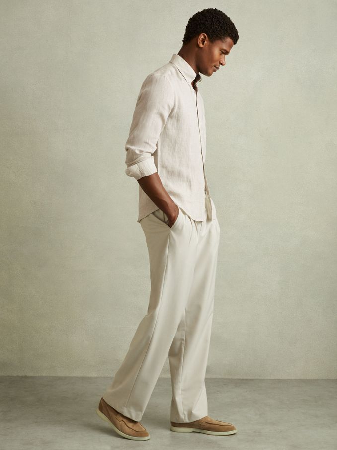 Queens Stone 100% Linen Button-Down Collar Shirt