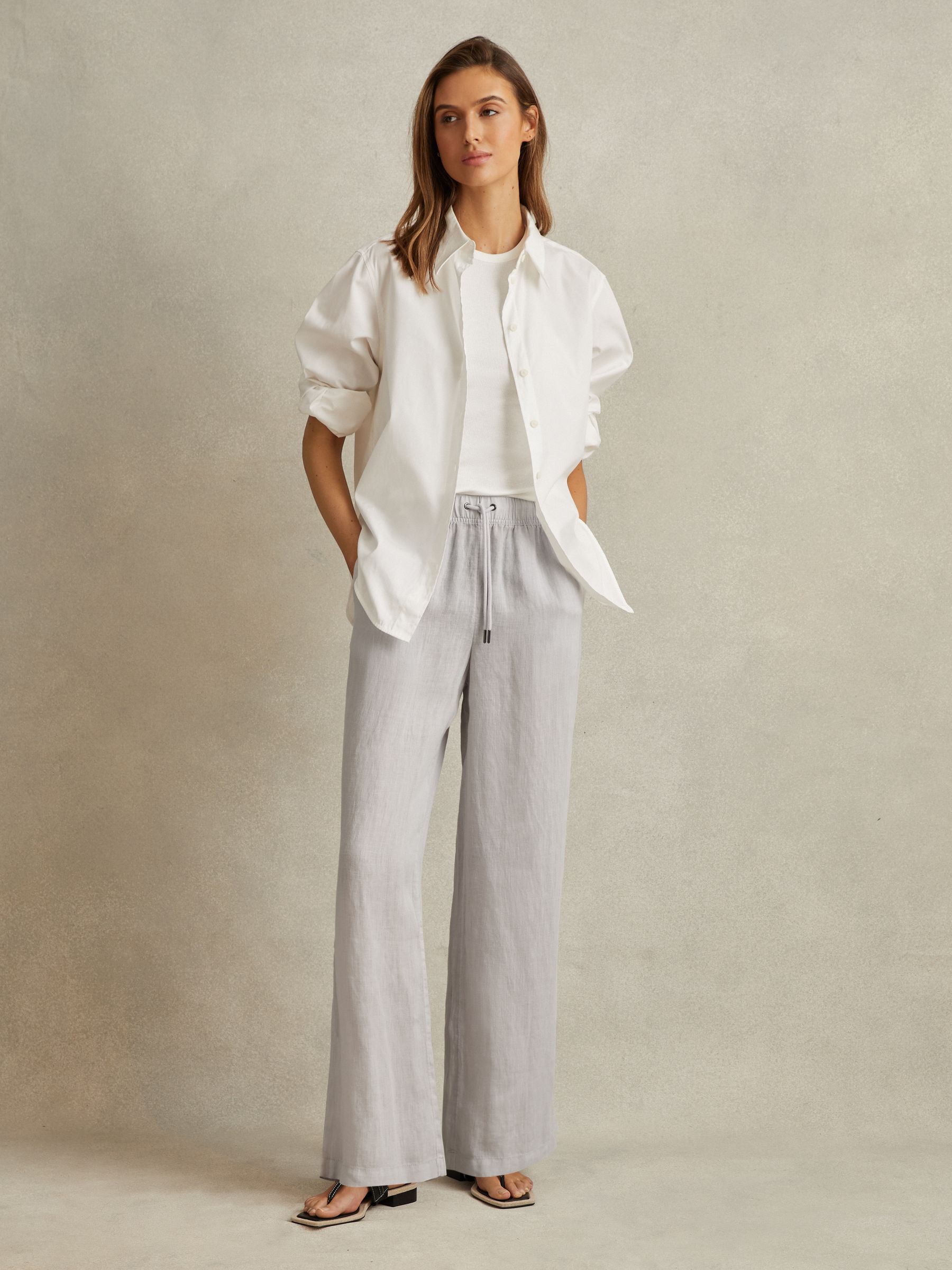 Linen-Blend Wide-Leg Trousers in Neutral