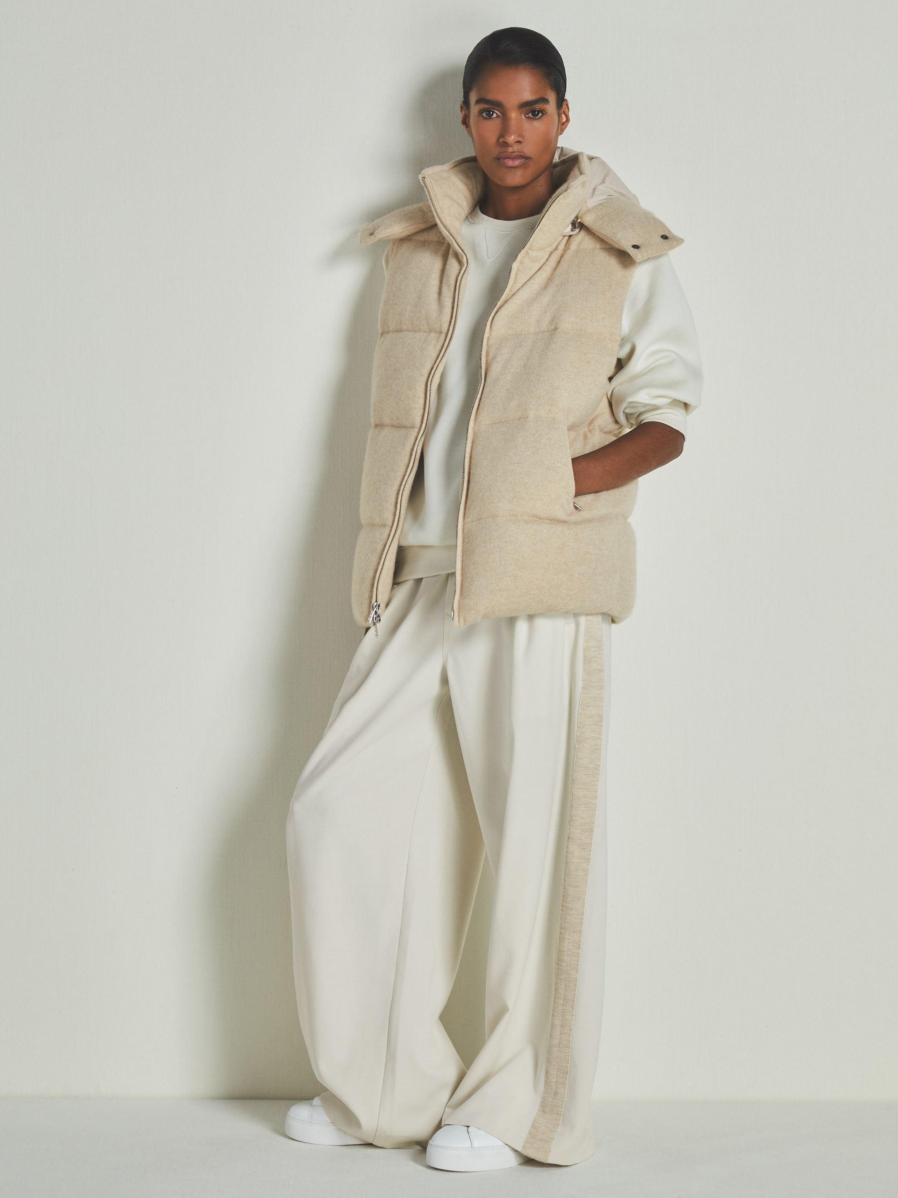 Reiss | Les 100 Ciels Brushed-Cashmere Down Gilet in Stone