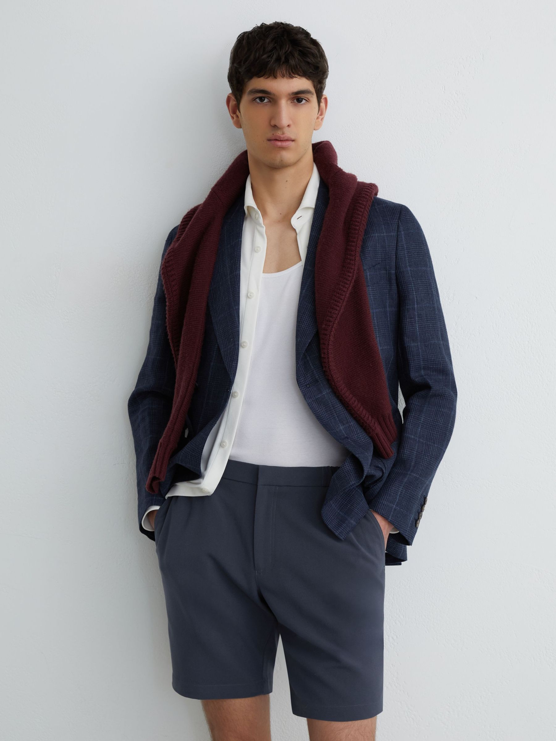 Textured-Wave Drawstring Shorts in Bordeaux