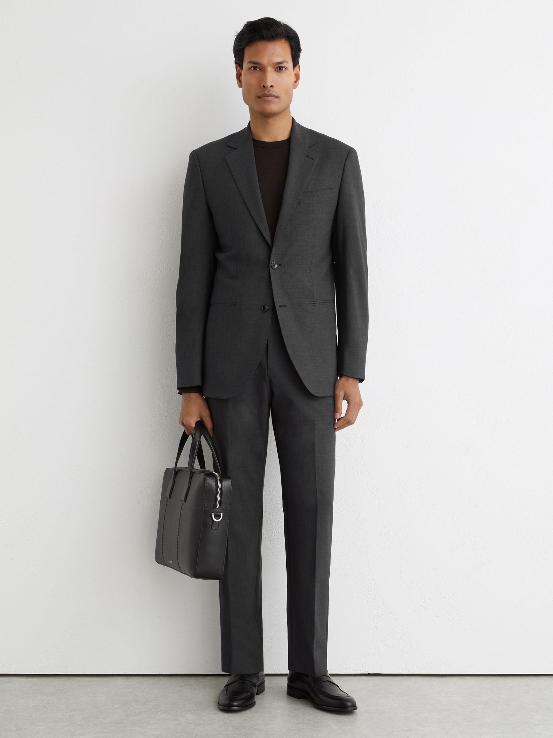 Wool-Blend Classic-Fit Suit Trousers in Grey