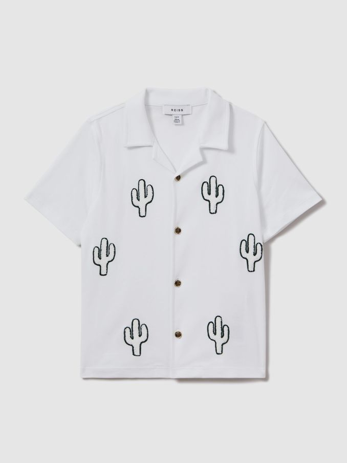 13-14 yrs Cotton Cactus Cuban Collar Shirt in White