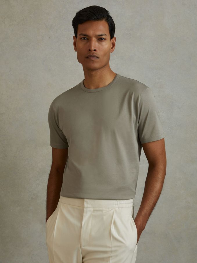Mercerised Cotton Crew Neck T-Shirt in Vetiver
