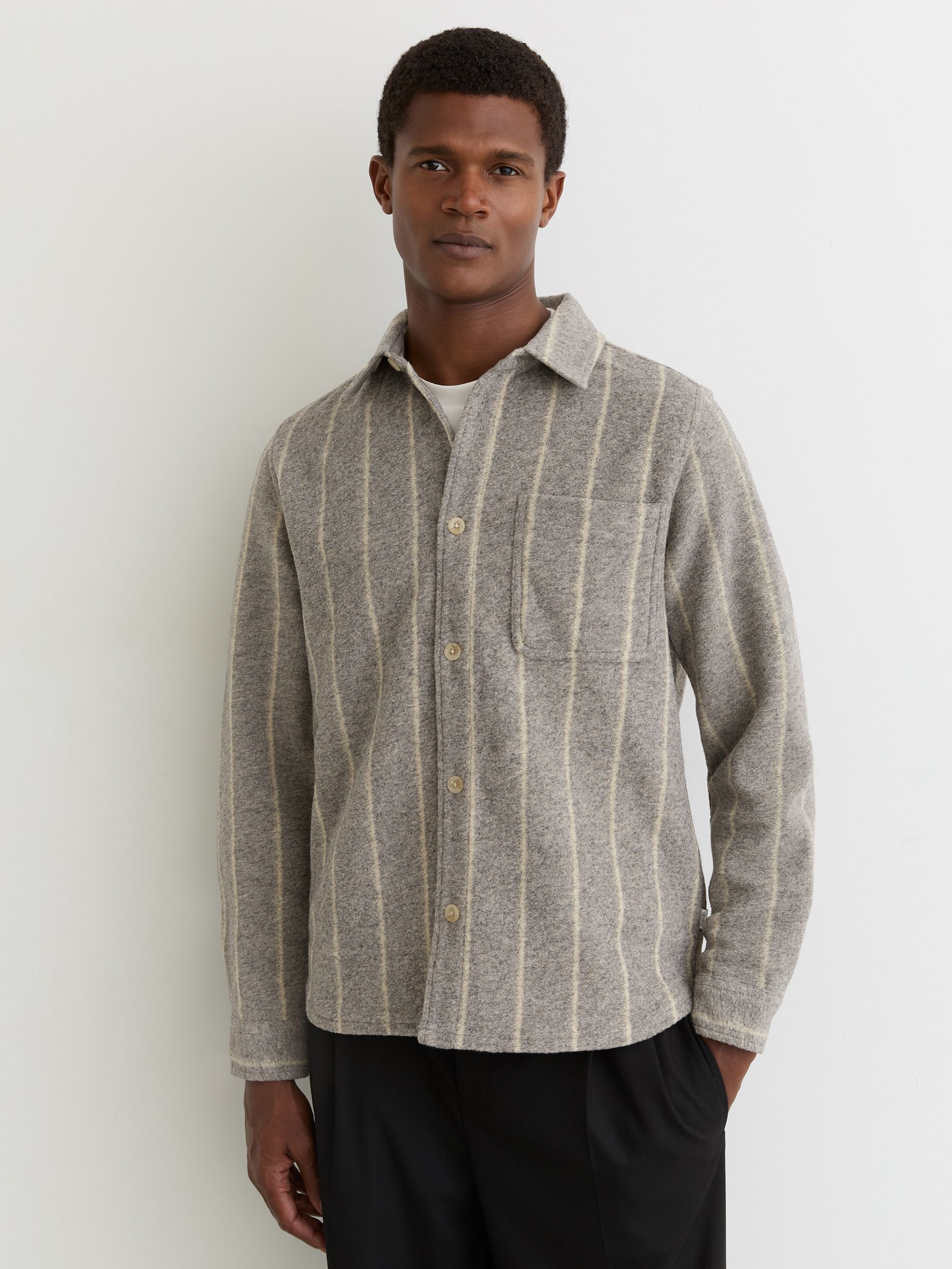 Twin-Pocket Button-Through Overshirt in Soft Grey Melange