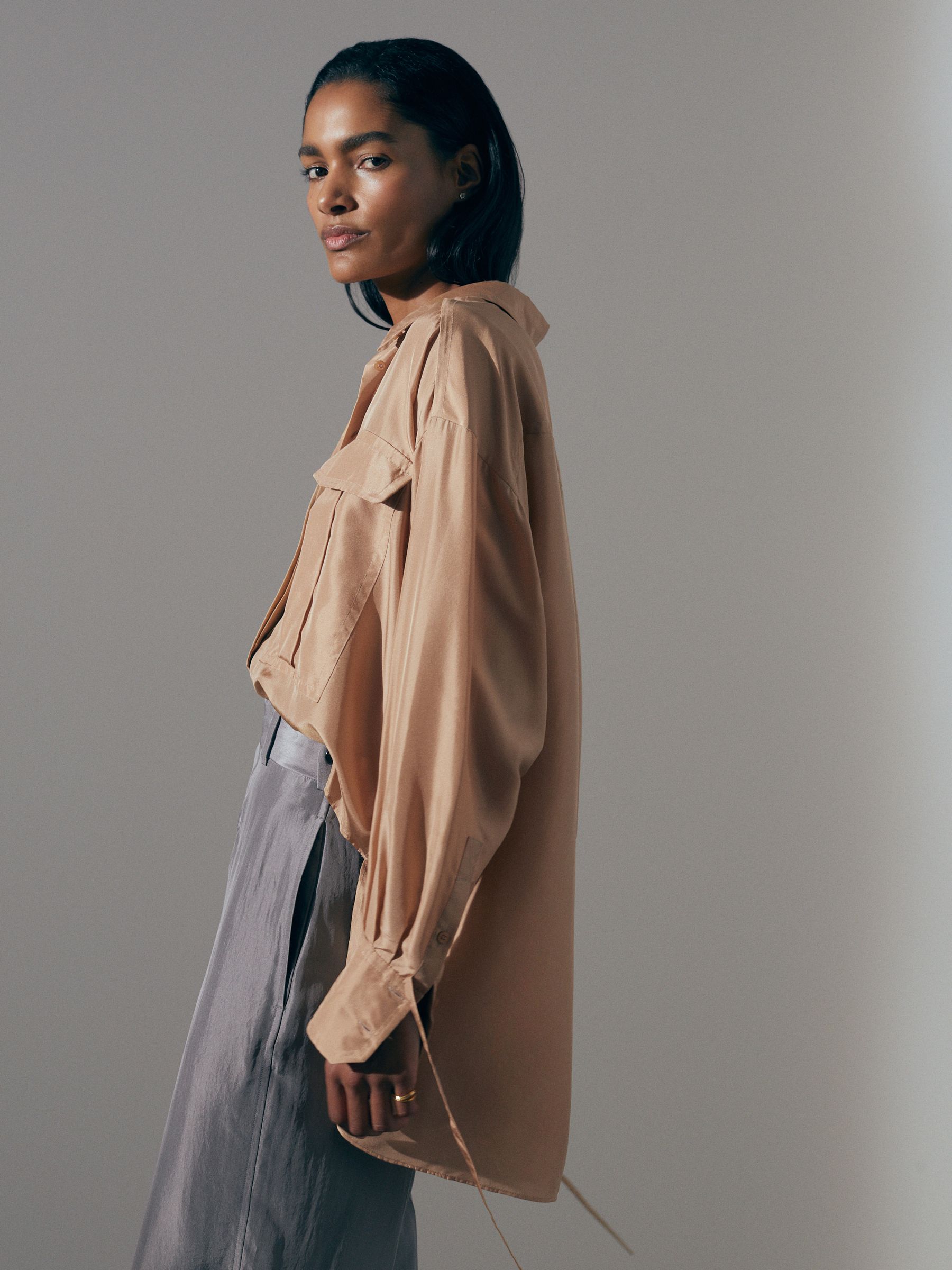 Atelier Oversized Pocket Button-Through Shirt in Camel