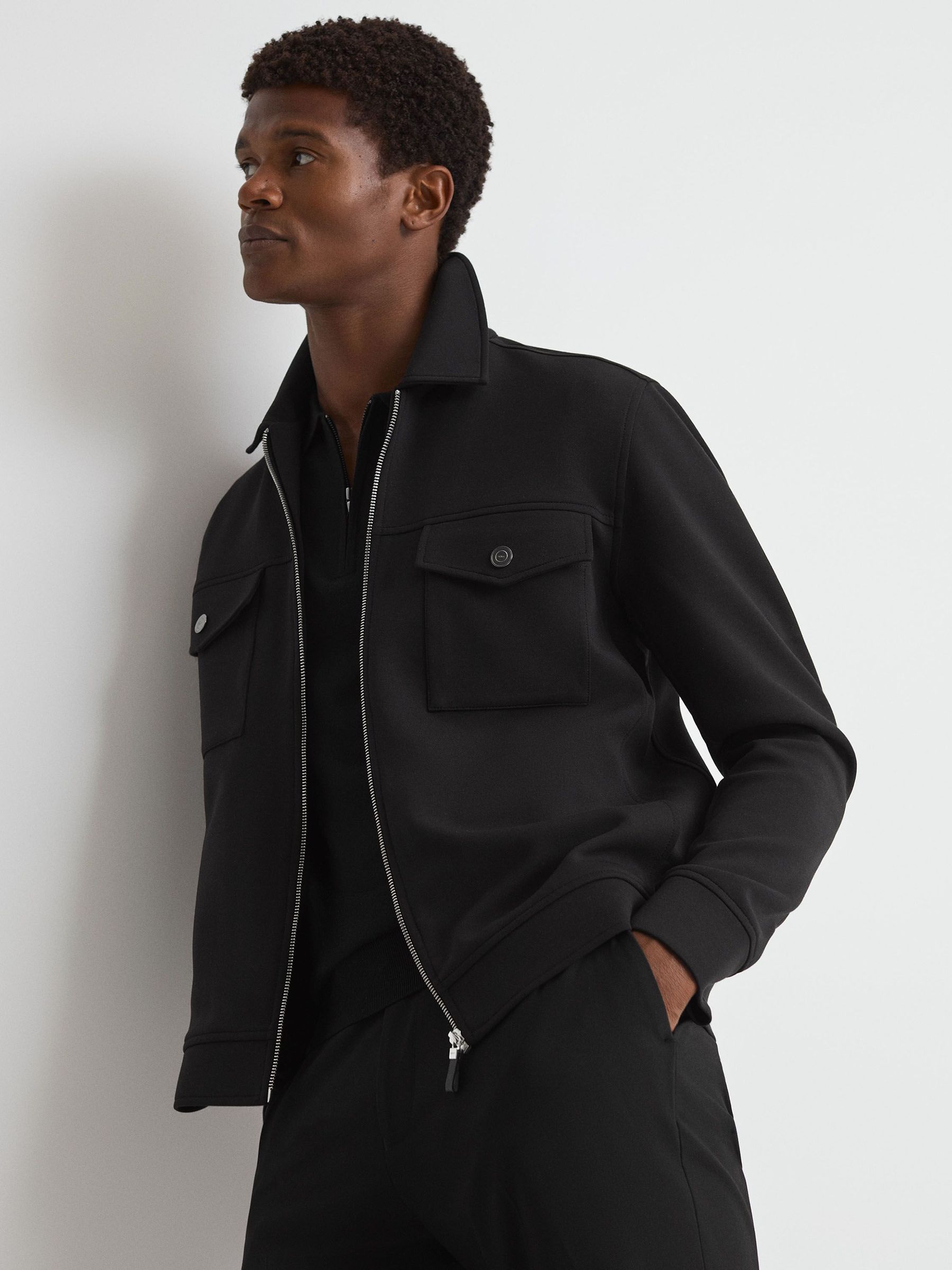 Technical Zip-Through Overshirt in Stone