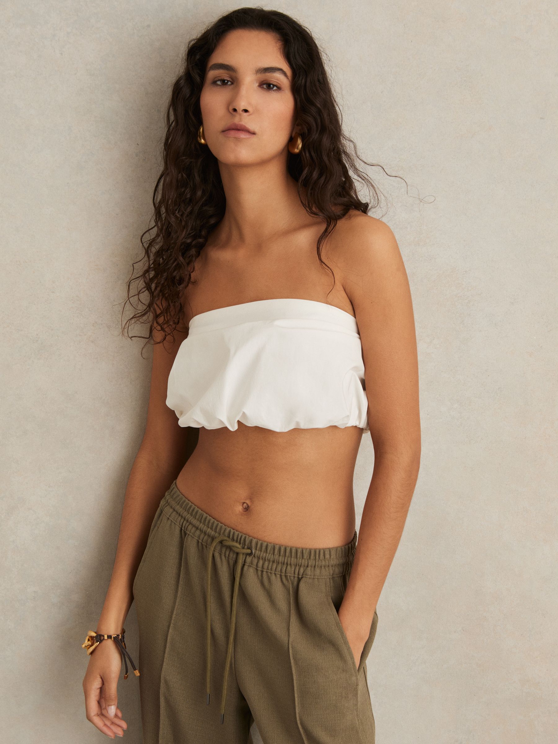 Cotton-Blend Bandeau Puffball Top in Ivory
