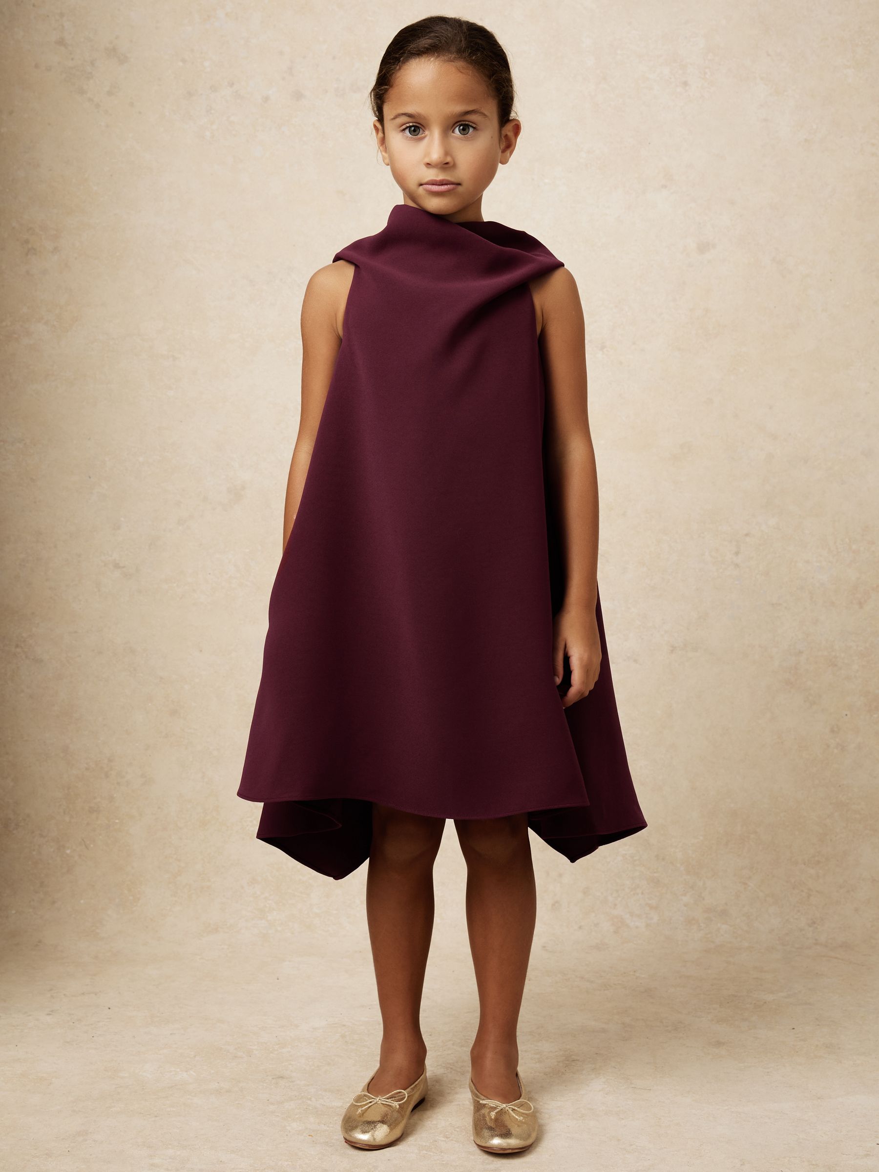 3-9 yrs High-Neck Drape Back Dress in Burgundy